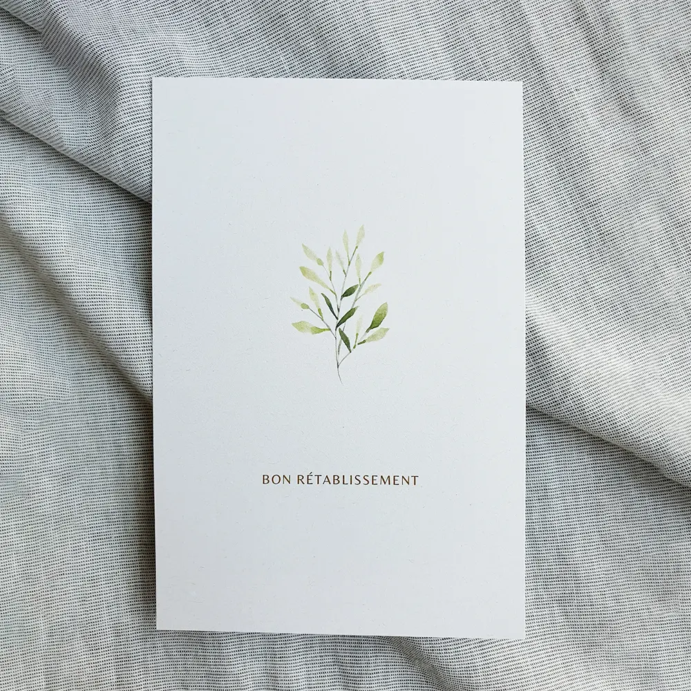 Carte de voeux sur papier 300g, 100% recyclé (avec un très joli aspect moucheté) fabriquée en Belgique par Les Agendas de Juliette.
