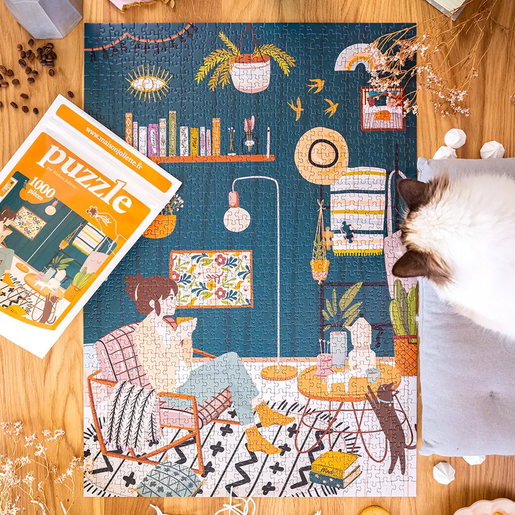 Découvrez ce puzzle 1000 pièces signé Maison Joliette, fabriqué en France dans une démarche éco-responsable. Son illustration délicate en fait un véritable plaisir à assembler, idéal pour s’offrir un moment de détente, pour adultes et enfants dès 10 ans.